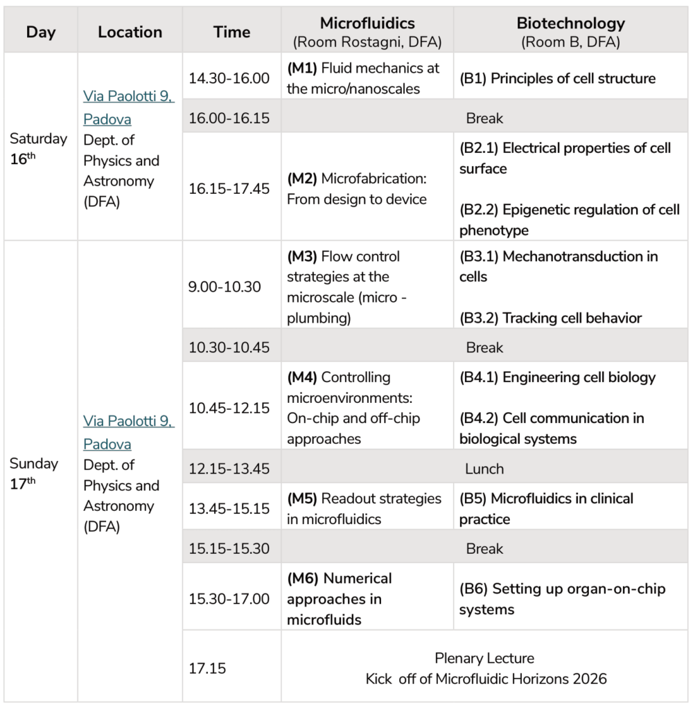 - Two Lectures Streams: Microfluidics & Biotecnhology